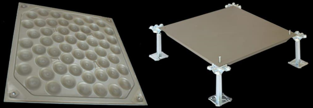 São constituídas com 2 chapas de aço ligadas entre si, com pontos de solda, sendo o fundo da placa estampados (tipo colméia), de modo a formar pontos de nervuras de resistência. As placas metálicas tem sua resistência à corrosão através de tratamento antiferruginoso à base de galvanização. As Placas são preenchidas internamente com concreto celular.